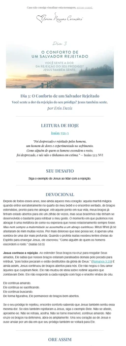 Enquanto Você Espera pelo Seu Pródigo: Um Desafio de Oração de 30 Dias do Aviva Nossos Corações é uma resposta a esse clamor, uma proclamação do poder da Palavra de Deus para te sustentar, e o poder da oração para trazer os pródigos para casa. Neste devocional de 30 dias, você caminhará por passagens das Escrituras e encontrará ferramentas para perseverar na oração. Perguntas na seção “Tornando pessoal” ajudarão você a levar a mensagem ao seu coração. Você não encontrará soluções rápidas ou respostas fáceis… apenas a voz do Bom Pastor que persegue implacavelmente Suas ovelhas, chamando-as de volta ao lar.