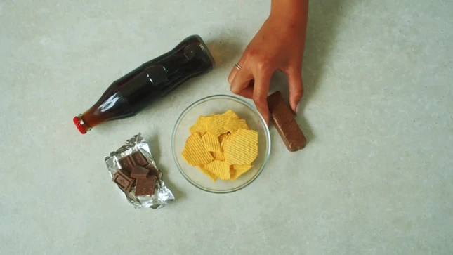 Mulher: Nada de salgadinhos agora, vai estragar o seu apetite.